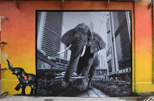 In Hong Kong we worked with social enterprise Project C:CHANGE, and teamed up with the world's best street artists to create the Walls of Change campaign. The artists Obey Giant, Hopare, Szabotage, Alana Tsui and Adam Lo joined forces to paint the walls and rooftops of Sai Yin Pun in Hong Kong to raise awareness about endangered wildlife. UN Messenger for Peace Dr Jane Goodall also took part in the campaign. If you are interested in a similar installation, please contact us here.